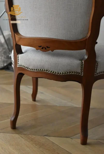 Bring a touch of French-inspired elegance to your home with our New Latest Furniture Designs 2026. This Regal Louis XV Style Armchair is a masterpiece of High Quality Chinioti Furniture 2026, designed for those who seek the Best Royal Furniture in Chiniot 2026. Featuring a beautifully contoured hand-carved frame in a rich natural walnut finish, this chair serves as a sophisticated statement piece that bridges the gap between classic heritage and modern luxury.