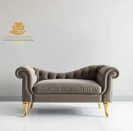 Design: Neoclassical-Baroque fusion featuring a unique “Infinity Loop” asymmetrical backrest and a majestic rolled arm.