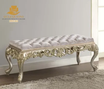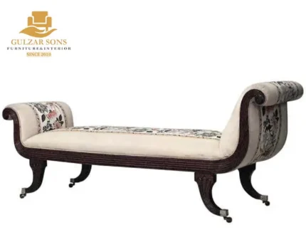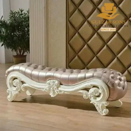 Masterfully hand-constructed from the Best Solid Shesham wood Furniture in Chiniot 2026, every detail—from the architectural “Infinity Loop” backrest to the delicate floral relief along the base—is seasoned to meet Export Quality Chinioti Furniture 2026 standards. The Diwan features a high-density plush velvet seat and a majestic rolled armrest, accented with silver upholstery tacks. Whether chosen as a high-fashion statement for a bridal suite or as a premium addition to a Best Jahaiz Package Furniture in Chiniot 2026, this piece stands as the Premium Quality Furniture in Chiniot 2026.