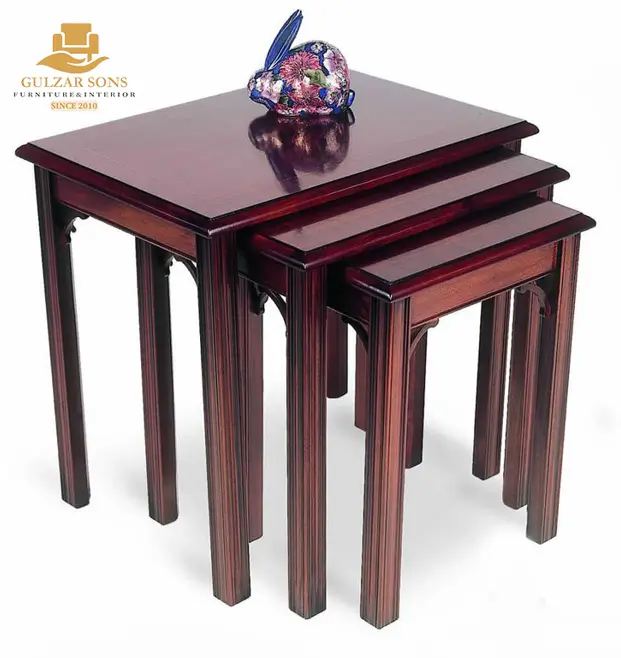Masterfully hand-constructed from the Best Solid Sheesham wood Furniture in Chiniot 2026, each table is seasoned to meet Export Quality Chinioti Furniture 2026 standards for a lifetime of heavy-duty use. The set is finished in a high-gloss mahogany polish that beautifully showcases the deep, linear grain of the wood. Whether used as individual side tables during a grand gathering or as a tiered accent display in a Best Jahaiz Package Furniture in Chiniot 2026, this set stands as the definitive Premium Quality Furniture in Chiniot 2026.