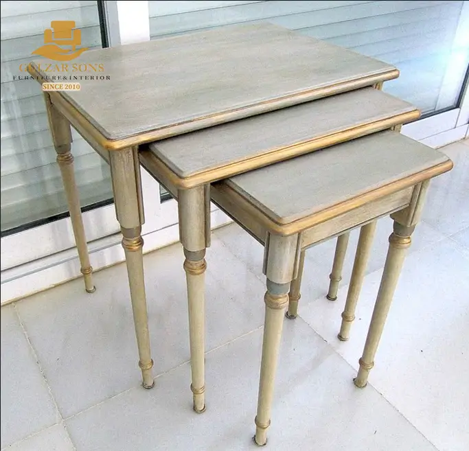 Maximize your living space without compromising on elegance with this signature set from the New Latest Furniture Designs 2026. These Wood Nesting Tables (Code: N00069) are a breathtaking display of High Quality Chinioti Furniture 2026, featuring a stunning handcrafted compass rose inlay on the primary table. As a Top Quality Furniture Brand in Chiniot 2026, Gulzar Sons has designed this set to be the perfect “Space-Saving Solution” that adds a touch of historical maritime charm to your home.
