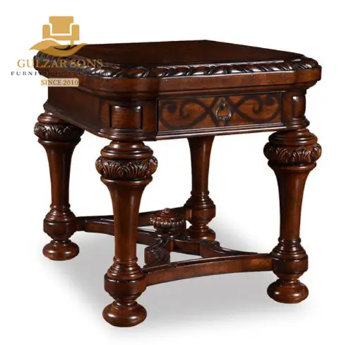 Masterfully hand-constructed from the Best Solid Sheesham wood Furniture in Chiniot 2026, the frame is seasoned to meet Export Quality Chinioti Furniture 2026 standards for permanent structural stability. The tabletop features a thick, molded edge with a scalloped apron, while the heavy-duty legs are hand-sculpted with traditional fluted and bulbous details. Whether used as a signature side table in a formal drawing room or as a premium addition to a Best Jahaiz Package Furniture in Chiniot 2026, this table stands as the definitive Premium Quality Furniture in Chiniot 2026.