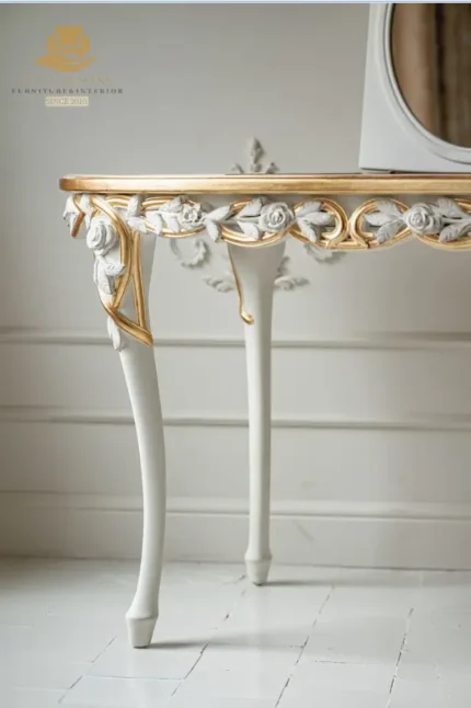 Bring timeless grace to your personal sanctuary with our New Latest Furniture Designs 2026. This Victorian-Style Wood Console is a signature example of High Quality Chinioti Furniture 2026, perfectly suited for those who demand the Best Royal Furniture in Chiniot 2026. Featuring a grand oval tilting mirror, multiple utility drawers with antique brass pulls, and elegant tapered legs, this piece functions both as a sophisticated hallway console and a luxurious bedroom dressing station.